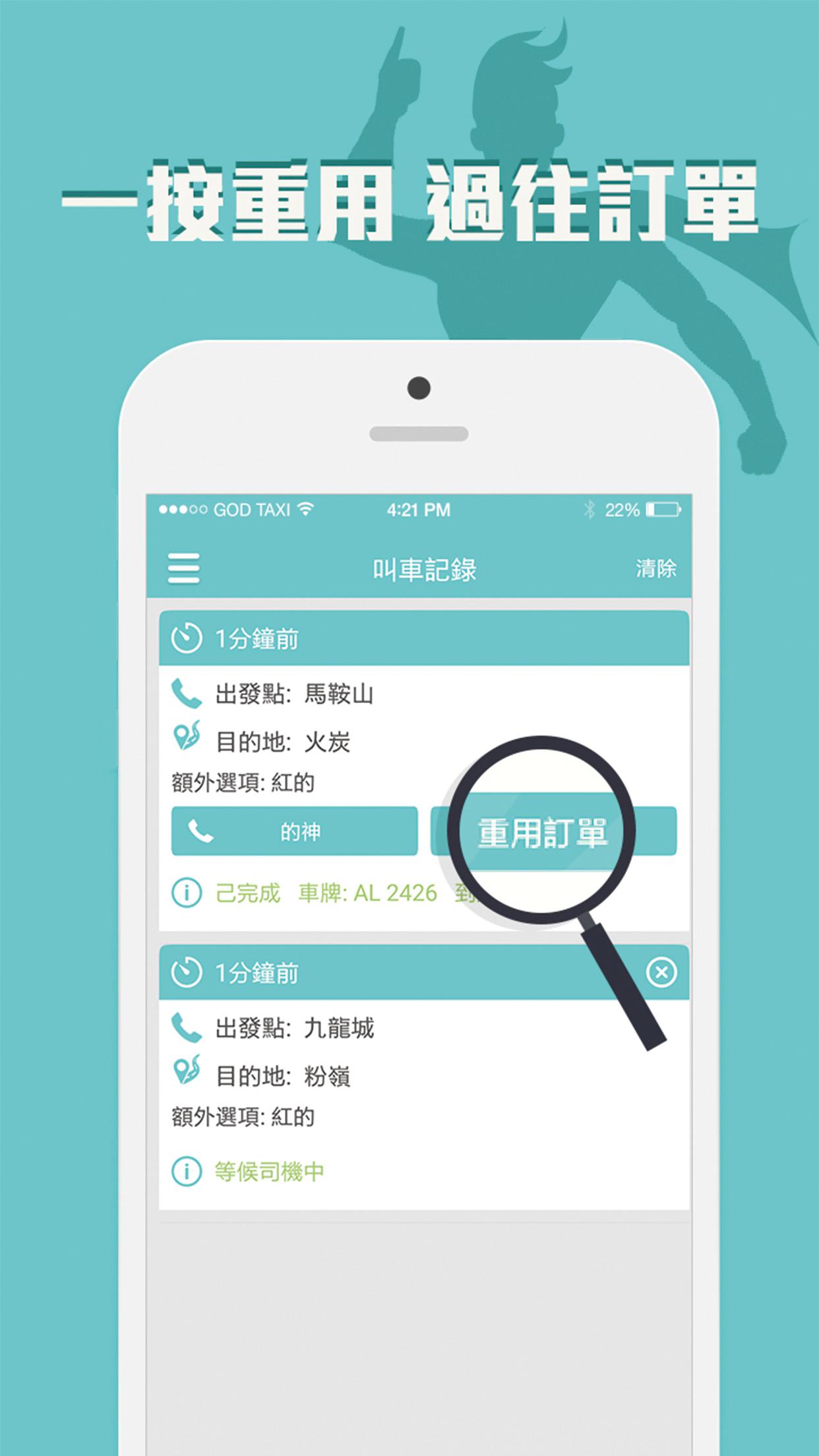 訂單唔止用嚟睇,仲可以用嚟撳!無須一再鍵入目的地,方便您一call再call。 一念以後,彈指之內,旅程已經為您準備好!